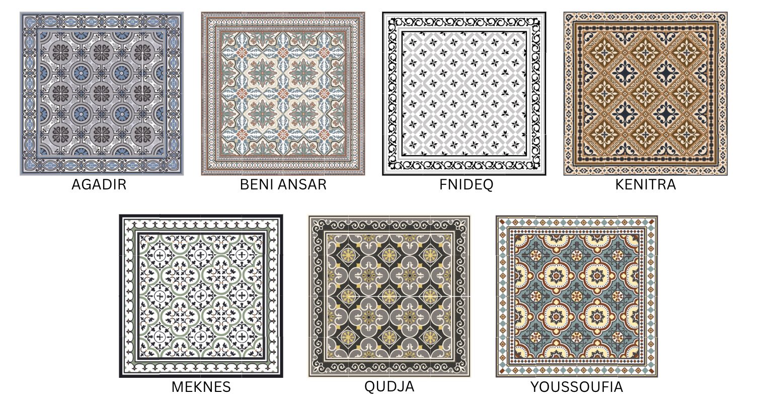 Kimgres proudly presents the Moroccan Tile Series — where timeless artistry meets modern craftsmanship. Each design is named after Morocco’s storied cities, celebrating both heritage and modern application.